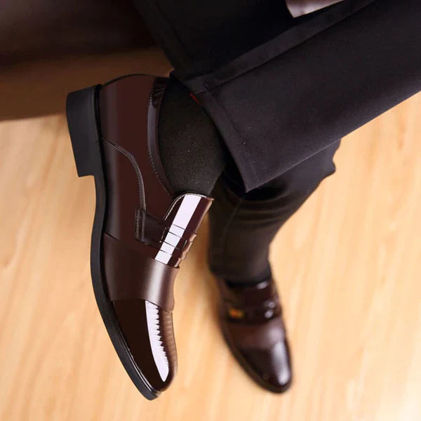 Feito em couro premium para garantir a máxima qualidade aos seus pés e proporcionar um caminhar mais confortável e sem dores; O sapato social masculino de couro possui um corpo respirável para bloquear a proliferação de bactérias e não causar maus odores.